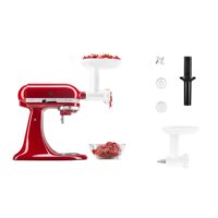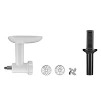 Marca KitchenAid. Aditamento picador de alimentos. Dos discos de acero inoxidable, molido grueso y fino. Sirve para picar carne, rallar rápidamente quesos duros, pan seco, frutas y verduras. Aditamento compatible con todas las Batidoras KitchenAid. Fácil de usar y limpiar. Dimensiones (Al x An x Prof): 15,9×22,2×20,3cm. Peso: 0,53kg