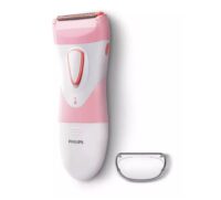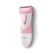 Marca Philips. Afeitadora femenina. Inalámbrica. Uso sobre piel seca y húmeda. Diseño en forma de S, su mango ergonómico te garantiza un mejor agarre. Además, su pequeño cabezal de afeitado, corta con rapidez, a la vez que protege la piel. Posee Wet & Dry que permite su uso en la ducha o en la bañadera. Funciona con pilas, y permite realizar la depilación en cualquiera lugar, ya que no posee cable. También, dispone de lámina hipoalergénica que evita irritaciones y erupciones.