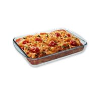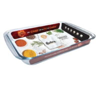 Asadera de vidrio templado. Apto horno a gas y eléctrico. Apto microondas. Apto freezer. Apto lavavajilla. No apto para usar sobre fuego directo. Evitar choques térmicos. Largo: 39,6cm. Ancho: 23,6cm. Alto: 5,2cm