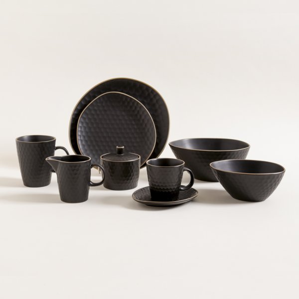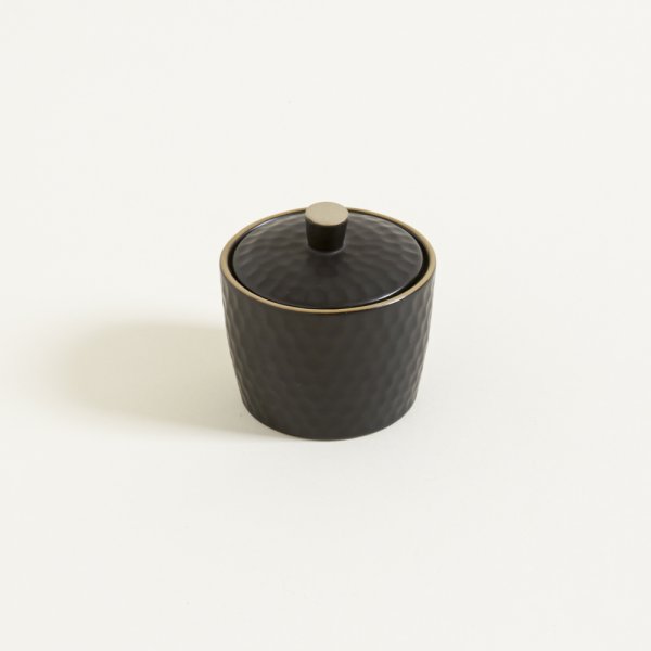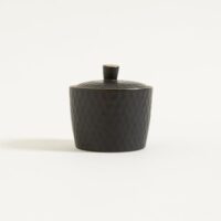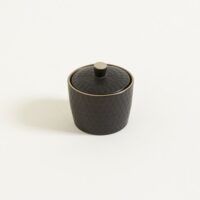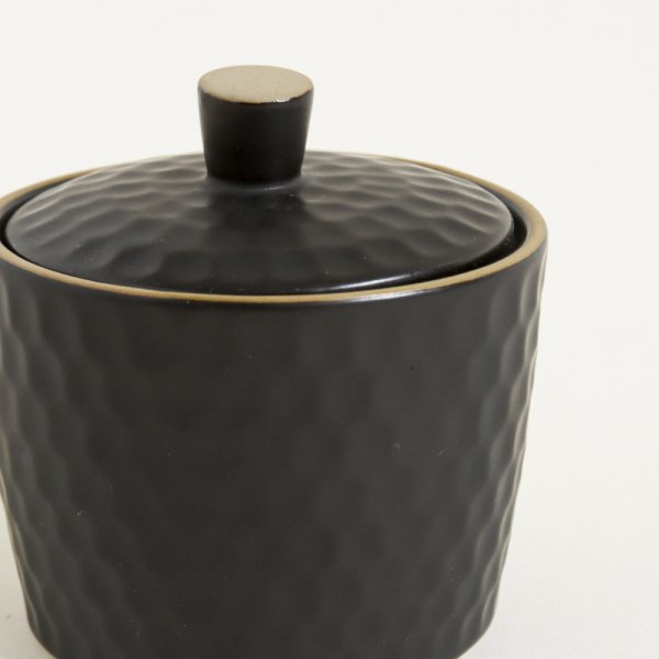 Azucarera de cerámica. Diseño panal en relieve. Color negro mate. Borde a contra tono. Capacidad: 310cc