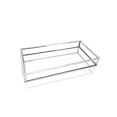 Bandeja rectangular espejada. Color plata. Destaca todo lo que coloques en su interior y aporta un toque glam a tus ambientes. Dimensiones: 24x14x3cm.