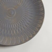 Bandeja de madera. Color gris y dorado. Modelo Yala. Diámetro: 40cm
