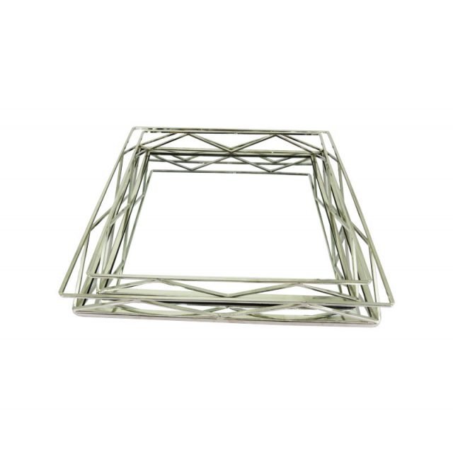 Bandeja cuadrada grande. Cuerpo metálico color plata. Base de vidrio espejado. Largo/ancho: 35cm – La bandeja chica se vende por separado –