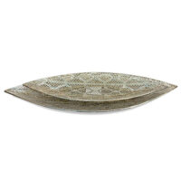 Bandeja metálica hoja grande calada. Estilo y personalidad, ideal para complementar con flores, velas u otros objetos deco. Dimensiones: 52x19x4cm