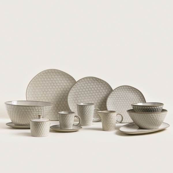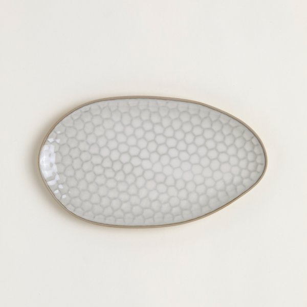 Bandeja de cerámica con textura tipo panal. Esmaltado. Largo: 33cm