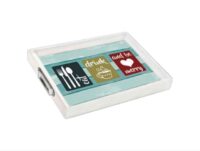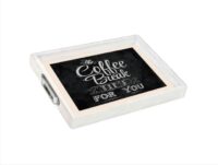 Bandeja rectangular de madera. Con manijas metálicas. Colección vintage. Artículo aleatorio, sujeto a stock. Dimensiones: 25x35cm.