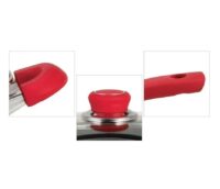 Batería de 5 piezas color rojo. Alumino de 1,6mm de espesor con doble capa de antiadherente. Mangos revestidos en pintura siliconada, suaves al tacto y antitérmicos. Tapas de vidrio templado con válvula de vapor. Base con anillos difusores, para una distribución rápida y uniforme del calor. Apto lavavajillas. Apto cocina a gas, cerámicas y eléctricas. No utilizar fuego excesivo. Incluye: Cacerola con asas 24cm de diámetro, 10cm de alto, capacidad 3,93l; Cacerola con mango 18cm de diámetro, 8,50cm de alto, capacidad 2,01l; Sartén 24cm de diámetro, 4,50cm de alto, capacidad 1,4l, Tapa de vidrio templado 24cm de diámetro, Tapa de vidrio templado 18cm de diámetro.