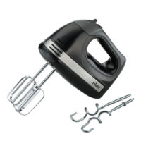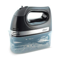 Marca Oster. Batidora de mano. 300 Watts. 5 velocidades. Diseño elegante y contemporáneo. Mango ergonómico. Incluye contenedor para almacenar. Incluye batidores y ganchos para amasar. Botón de un solo toque que expulsa los batidores. Función turbo.