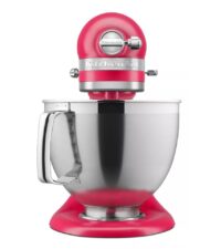 Marca KitchenAid. Batidora Planetaria Artisan. Modelo RKSM195PSRHI. Motor de alto rendimiento. Control de 10 velocidades. Cuerpo metálico que proporciona durabilidad y confianza. Recipiente de acero inoxidable de 4,7L y tazón de acero inoxidable de 2,8L, ambos con manijas. Accesorios: 1 batidor de gancho, 1 batidor elíptico, 1 batidor plano, 1 batidor plano recubierto, 1 tapa anti salpicaduras. 120V. 325W de potencia. Largo del cable 122cm. Color Hibiscus. Dimensiones (Al X An X Prof): 34,29×21,08×33,78cm. Peso: 10,6kg