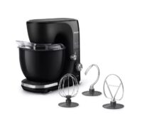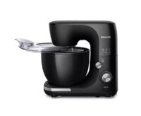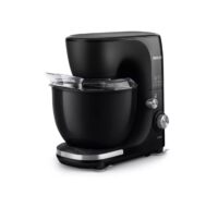 Marca Philips. Batidora planetaria. Potente motor de 650W. 10 velocidades. 4 accesorios: batidor, gancho de amasar, varilla y protector contra salpicaduras. Recipiente plástico de 5L.