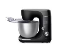 Marca Philips. Batidora planetaria. Potente motor de 800W. 12 velocidades. 4 accesorios: batidor, gancho de amasar, varilla y protector contra salpicaduras. Recipiente de acero inoxidable de 5L