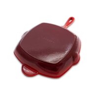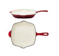Marca Sakura. Bifera/plancha de hierro fundido esmaltado. Esmalte interior antiadherente. La estructura de hierro fundido permite conservar el calor para cocinar y dorar de manera uniforme. Apto horno, fuego directo, inducción y grill. Mango y asa que permiten una fácil y cómoda manipulación. Boquillas laterales para verter el contenido sin gotear. No sobrecalentar, cocinar a fuego medio o bajo constante para cuidar el hierro fundido. Limpiar con agua y jabón/detergente no abrasivo. Largo: 43,5cm. Ancho: 28cm. Alto: 4,5cm