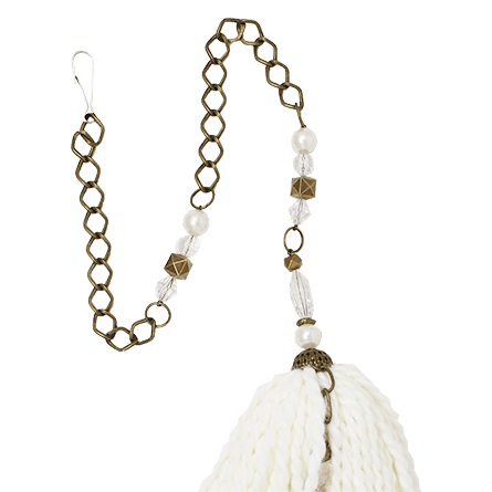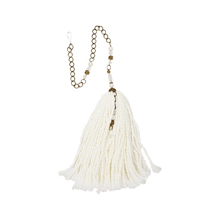 Borla candela. Color crudo. Largo de la borla: 30cm. Largo total 84m. El modelo de cadena puede variar.