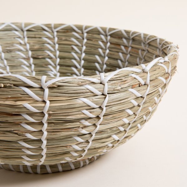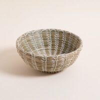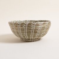 Bowl cónico de fibra natural marina combinado con hilado blanco. Dimensiones: 34x13cm