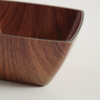 Bowl de polipropileno simil madera nogal. Ancho y Largo: 12cm. Alto: 6cm