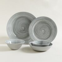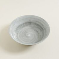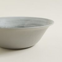 Bowl de fibra de bamboo. Interior combinado blanco-gris. Exterior gris claro. Diámetro mayor: 29cm.