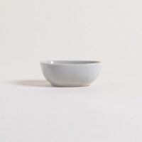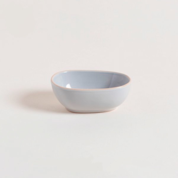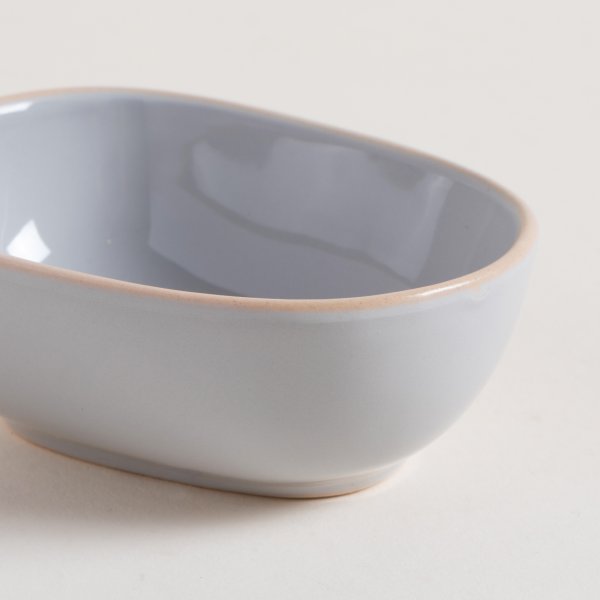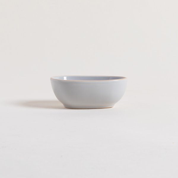 Bowl color gris claro brillante realizado en cerámica de alta durabilidad. Línea Zarzis. Diseño de acabado original y rústico de bordes ovalados en color natural. Esta vajilla se adapta para ser combinada con otras líneas gracias a su aspecto artesanal. Apto lavavajillas. Apto microondas. No apto horno. Medida: 12,5cm de largo x 9cm de alto