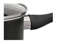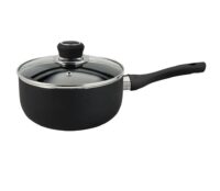 Cacerola de aluminio de 2mm de espesor con doble capa de antiadherente. Mango revestido en pintura siliconada, suave al tacto y antitérmico. Base con anillos difusores, para una distribución rápida y uniforme del calor. Tapa de vidrio templado con válvula. Apto lavavajillas. Apto cocina a gas, vitrocerámicas y eléctricas. No utilizar fuego excesivo. Ancho/diámetro: 18cm. Alto: 8,5cm. Capacidad: 1,7l