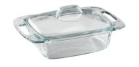 Marca Pyrex. Modelo Easy Grab con asas. Vidrio templado. Apto para horno, microondas, heladera, freezer y lavavajillas. No apto para fuego directo. Evitar choque térmico. Largo: 22,8cm. Ancho: 18cm. Alto: 7cm. Capacidad: 2l
