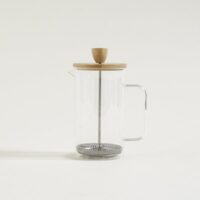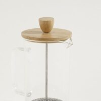 Cafetera con émbolo. Tapa bamboo. Capacidad: 600ml. Alto: 17,5cm. Ancho: 13cm. Largo: 8cm.