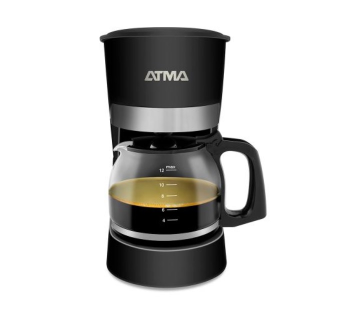 Marca Atma. Modelo: CA8143P. Cafetera de filtro. Capacidad de 1.2L (10-12 tazas). Filtro descartable. Estructura de plástico. Dispositivo antigoteo. Potencia 850W. Tanque transparente con indicador de nivel de agua. Base calentadora anti adherente. Interruptor luminoso. Jarra de vidrio. Modo de uso muy sencillo e intuitivo. Sabor intenso en minutos, prepara café de manera rápida y sencilla.