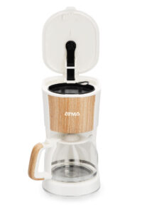 Marca Atma. Cafetera eléctrica de filtro. Línea Nórdica. Diseño simil madera. Potencia 900W. Capacidad 1.25L. Estructura de plástico. Posee filtro. Apagado automático. Dimensiones: 27x17x32,4