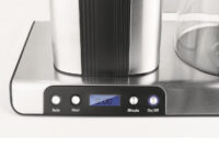 Marca Peabody. Cafetera eléctrica por goteo. Capacidad 1,25 litros. Potencia 1550W. Preparación rápida en 6 minutos. Medidor de agua transparente. Display LCD. Filtro de acero inoxidable. Goteo regulable. Flujo de agua de 8 orificios para un uso óptimo del café. Función “Mantener Caliente”. Timer programable 24 hs. Jarra de vidrio. Detalles acero inoxidable.