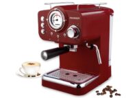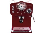 Marca Peabody. Cafetera express. Potente bomba de 20 bar de presión para mejorar la cremosidad del café. 1,25 lts. de capacidad en tanque de agua removible. Reloj indicador de temperatura. Caldera de alta recuperación de acero inoxidable. Filtro de aluminio. Función vapor y precalentado. Accesorios: Filtro individual, filtro para café doble, cuchara medidora de café.