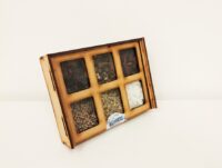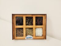 Caja x6 botánicos para gin. Arándanos rojos, mix de pimientas, flor de hibiscus, coriandro, semillas de de hinojo, coco en escamas. Dimensiones: 16,2×12,3×3,5cm