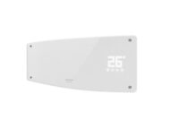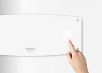 Marca Peabody. Caloventor de pared. 2000W de potencia. Control remoto. Display Touch LED con control de temperatura. Placa de vidrio curvo templado. Funciones: Eco, Solo viento, Viento con resistencia al mínimo, Viento con resistencia al máximo, Oscilación para direccionar el calor, Modo de ahorro de energía a 1000W de potencia. Apagado automático ante sobrecalentamiento. Espacio guardacable.