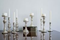 Candelabro de vidrio mercurizado efecto envejecido. Protagonistas de las mesas, diseño que aporta calidez y glamour. Dimensiones: 10x30cm