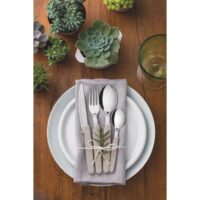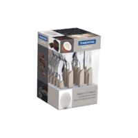 Marca Tramontina. Línea Carmel. Juego de cubiertos 24 piezas. Lámina de acero inoxidable. Mango de polipropileno color natural. Apto lavavajillas. Incluye: 6 cuchillos asado 4″ carmel, 6 tenedores de mesa carmel, 6 cucharas de mesa carmel, 6 cucharas de té carmel