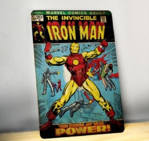 Chapa con imagen retro, superhéroes. Rectangular, grande. Medidas: 43x30cm.