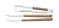 Marca Tramontina. Línea Churrasco. Juego de asado 3 piezas. Lámina de acero inoxidable y mango de madera. Cuchilla, trinchante y pinza de carne. Presentación en blister.