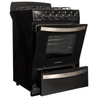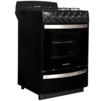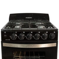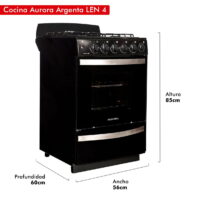 Marca Aurora. Cocina. Modelo ARGENTA LEN.4. Quemadores de alta eficiencia. Enlozado color negro. Encendido Eléctrico en Horno y Hornallas. Horno con Luz y Puerta Desmontable con Doble Cristal. Horno y Parrilla ambos recubierta con Easy Clean de fácil limpieza. Rejilla de horno deslizable al abrir la puerta. Cajón Parrilla con Asadera a 3 niveles. Burlete siliconado. Rejilla Enlozada. Válvula de Seguridad en Hornallas y Horno. Timer. Manija Simil Plata.