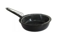 Marca Jovifel. Conjunto freidor sartén y canasto. Sarten enlozada. Canasto de alambre cromado. Diámetro: 25cm. Alto: 6cm