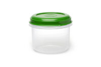 Contenedor plástico transparente redondo. Tapa colores surtidos. Apto freezer. Apto microondas (función recalentar). Diámetro: 9,5cm . Alto: 7,6cm. Capacidad: 300ml