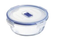 Marca Luminarc. Modelo Pure Box. Contenedor hermético de vidrio templado y tapa clip de polipropileno. Apilable con tapa colocada. Resistente temperaturas elevadas. Apto microondas. Apto lavavajillas. Resistente a choques térmicos. Resistente a impactos. Diámetro: 17,1cm. Alto: 7,45cm. Capacidad: 920ml
