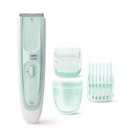 Marca Philips. Cortadora de cabello para niños. Diseñada especialmente para recoger el cabello cortado del bebé de manera sencilla con cuchillas aptas para piel sensible y proporcionar una mayor comodidad. Cuenta con protección IPX7 que permite limpiar fácilmente la cortadora de cabello bajo el agua. Sistema de corte seguro. Compartimiento de limpieza de apertura con un sólo botón para que la experiencia de recorte sea sencilla. 11 Posiciones de corte. Largo de corte: de 1 a 11 mm. Duración de la batería: 60 minutos.