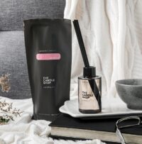 Marca The Candle Shop. Difusor de Ambiente en envase PET con varillas sinteticas negras. Fragancia Lima Peonias. Ingredientes principales de la fragancia: Limas. Manzana, Bergamota, Peonías, Flores Blancas, Violetas, sándalo y musk. El difusor viene en un moderno y atractivo packaging.