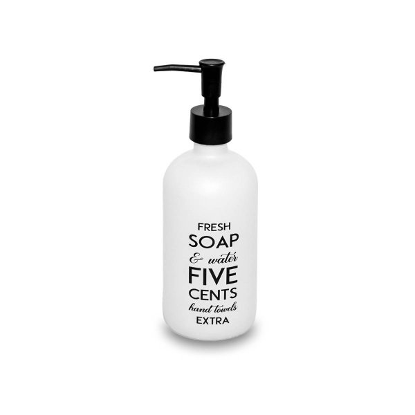 Dispenser de vidrio para jabón líquido. Color blanco y negro. Dimensiones: 22x7cm