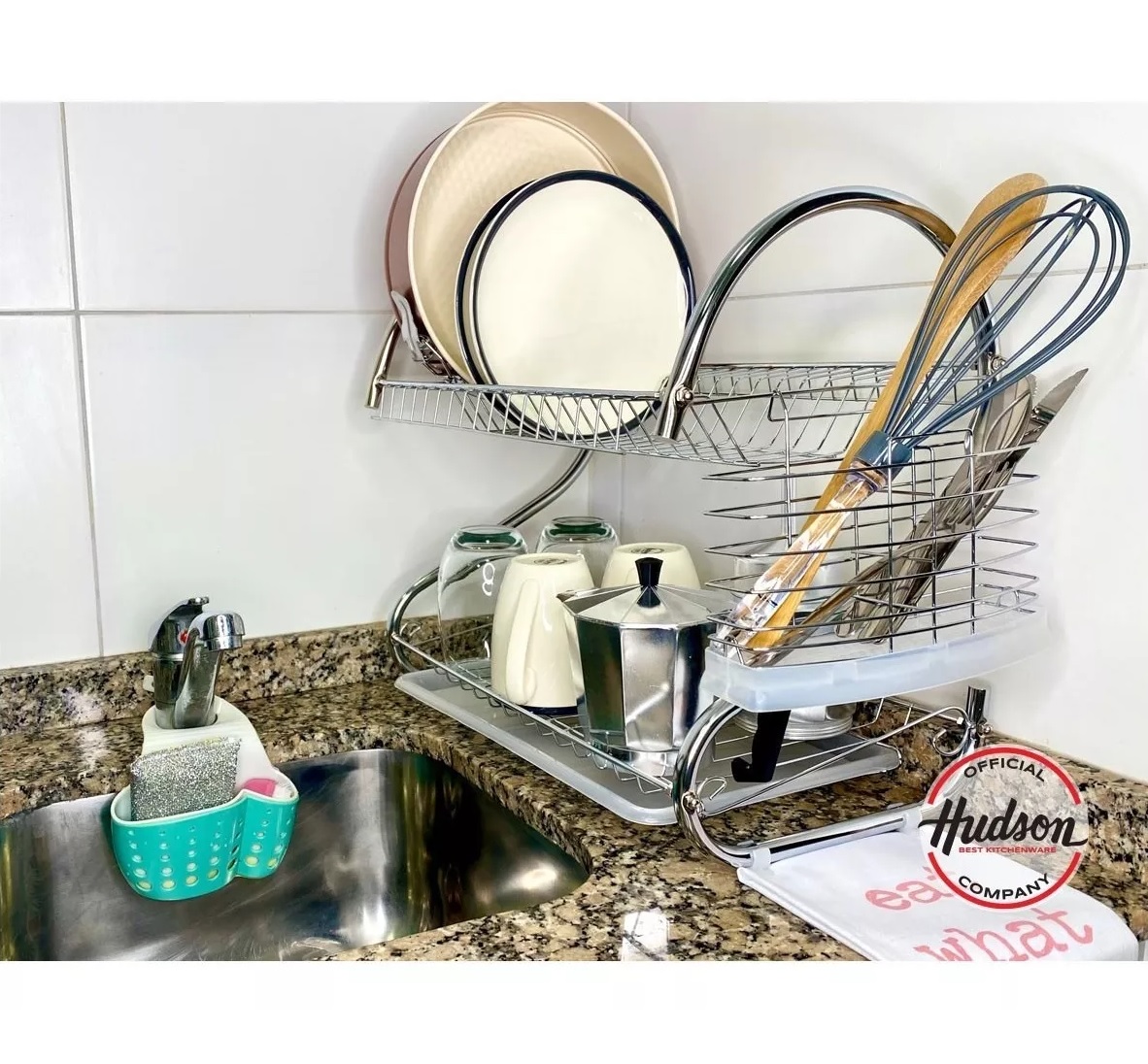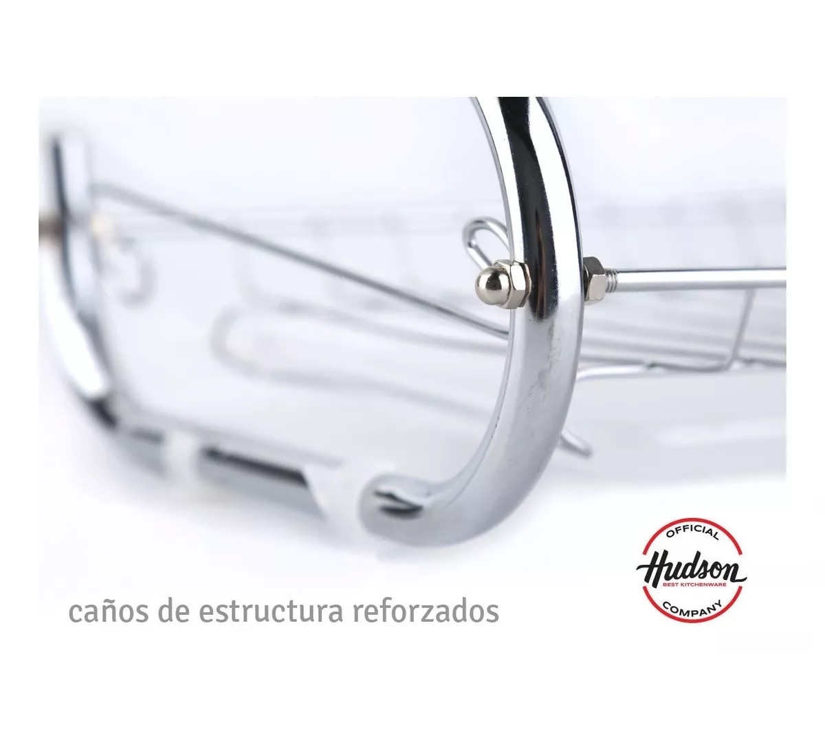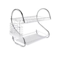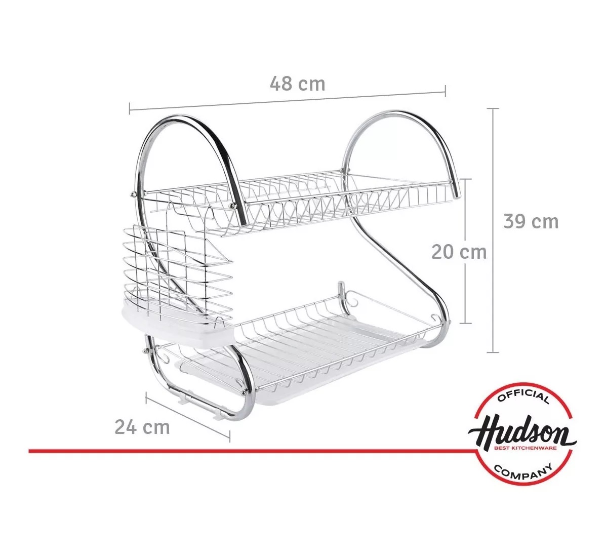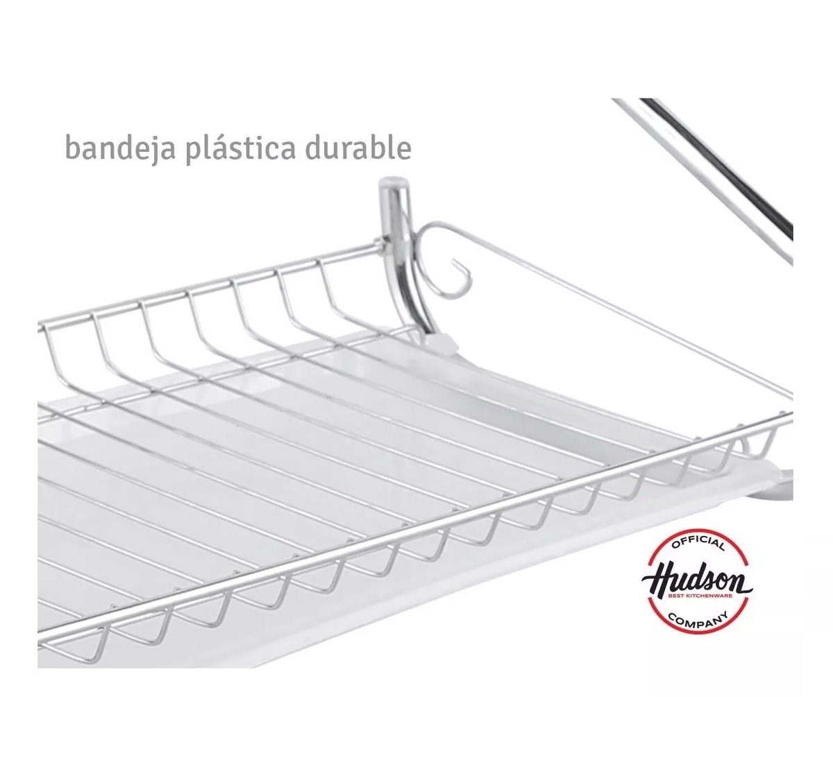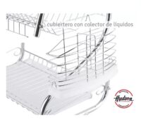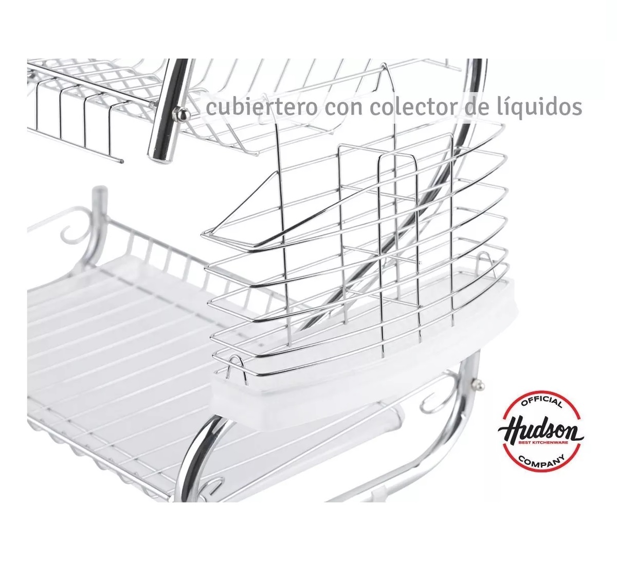 Escurridor de platos. Dos niveles. Estructura reforzada de acero cromado. Capacidad de platos: 16. Cubiertero con colector de líquidos. Bandeja Plástica Durable. Presentación caja de regalo. Largo x Ancho x Altura: 24x48x39cm