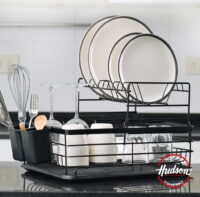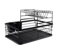 Escurridor de vajilla de acero inoxidable esmaltado. Bandeja plástica colectora de agua. Largo: 43cm. Ancho: 31cm. Alto: 27 cm