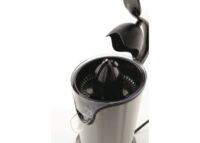 Marca Peabody. Exprimidor eléctrico. Potencia 100W. Cuerpo completo de Acero Inoxidable. Cabezales ajustables a distintos tamaños de cítricos. Dasegote plástico con función anti-goteo. Diseño de cilindro. Manija útil para sujeción de frutas. De fácil lavado. Silenciosa. Pie anti deslizante.