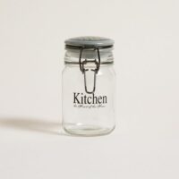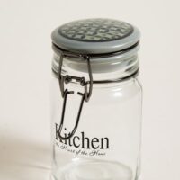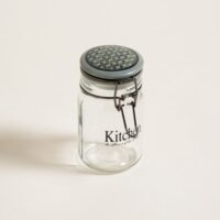 Frasco especiero redondo hermético Kitchen. Cierre tipo gancho color negro. Tapa cerámica gris. Capacidad: 250ml