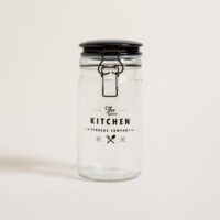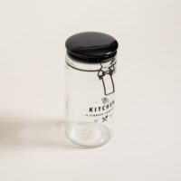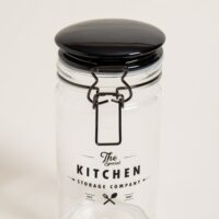 Frasco redondo de vidrio Storage Company. Cierre hermético tipo gancho color negro. Capacidad: 1000ml