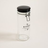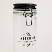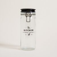 Frasco redondo de vidrio Storage Company. Cierre hermético tipo gancho color negro. Capacidad: 1300ml