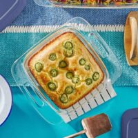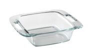 Marca Pyrex. Modelo Easy Grab con asas. Vidrio templado. Apto para horno, microondas, heladera, freezer y lavavajillas. No apto para fuego directo. Evitar choque térmico. Largo: 20cm. Ancho: 20cm. Alto: 7cm. Capacidad: 1,9l