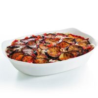 Marca Luminarc. Modelo Smart Cuisine. Fuente de vidrio templado color blanco. Liviana y resistente. Apto para cocción en horno tradicional y eléctrico. Apto microondas. Apto lavavajillas. Resistente a choques térmicos. Resistente a impactos. Resistente temperaturas elevadas hasta 250°C. Largo: 33cm. Ancho: 24cm. Alto: 5,4cm