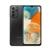 Marca Samsung. Celular Galaxy A23 Negro. Pantalla de 6,6″. Resolución 1080x2408px. Procesador: Procesador Qualcomm SM6225 Octacore. Velocidad: 2,4GHz. RAM: 4GB. Almacenamiento: 128GB, ampliable con tarjeta microSD. Expansión: microSD hasta 1TB. Cámara principal: cuádruple, 50Mpx principal + 5Mpx gran angular + 2Mpx profundidad + 2Mpx macro. Cámara frontal: 8Mpx Batería: 5000mAh. Carga rápida 25W. Sistema Operativo Android 12. Bluetooth 5,1. Conector de carga: USB tipo “C”. Wi-Fi. GPS. NFC. Radio. Red 4G. NanoSIM. Sonido Dolby Atmos. Lector de huellas lateral. Jack de auriculares. Dimensiones: 165,4×76,9×8,4mm. Peso: 195g